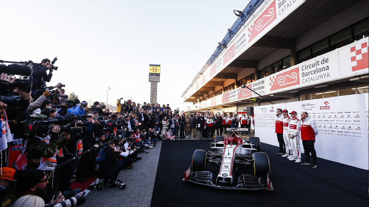 On the morning of the first official Formula 1 winter test, Alfa Romeo pulled the cloth of off their 2020 car. The Alfa Romeo C39 was officially unveiled at a press event an hour before the first test session and the new 2020 livery was revealed.
